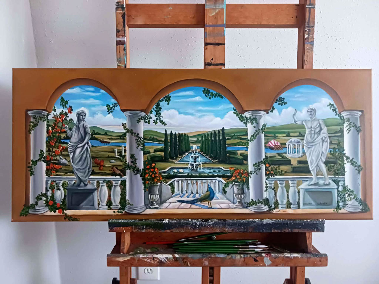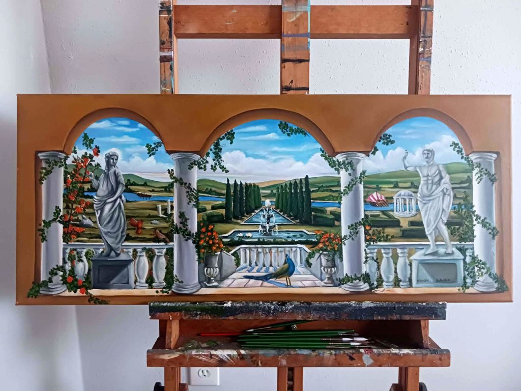 We are pleased to share a small-scale reproduction of a Roman mural, meticulously hand-painted to honor the timeless beauty and classical spirit of ancient art. This refined piece introduces understated elegance and historical depth into a residential setting, demonstrating that even a modest mural can embody centuries of artistic heritage. Contact us for free information: